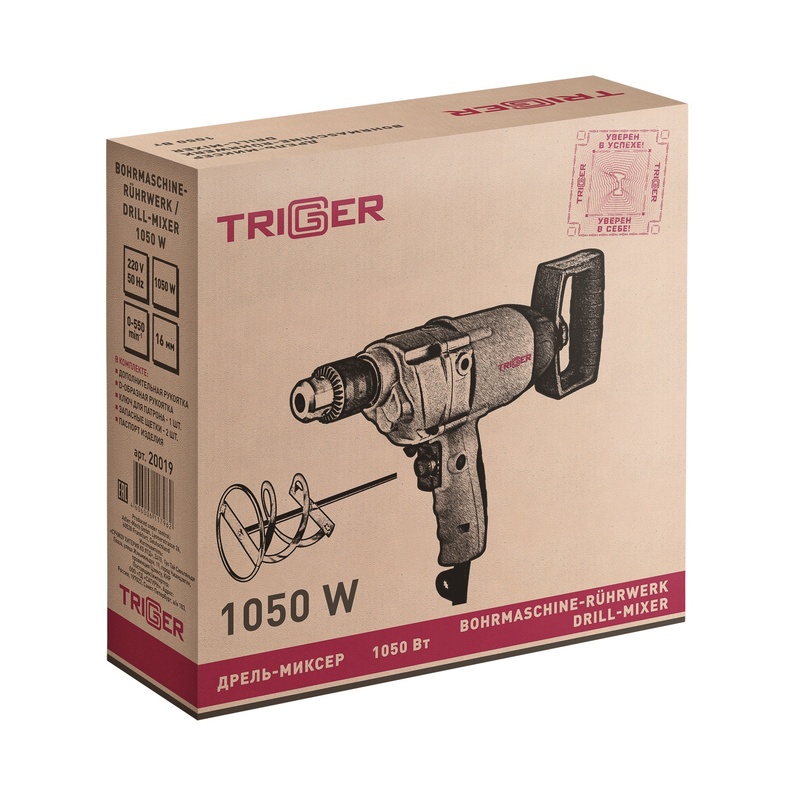 Дрель-миксер сетевой Trigger 20019, 1,05 кВт, 550 об/минуту, ключевой патрон 16 мм, реверс в Казани