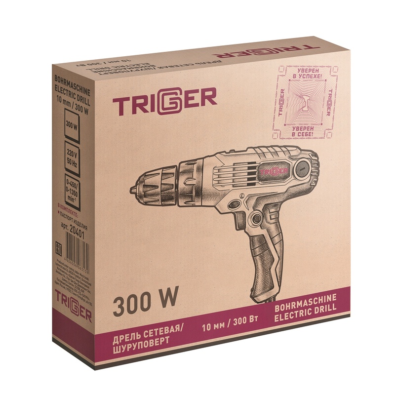 Дрель-шуруповерт сетевая Trigger 20401, 10 мм, 0,32 кВт, 32 Нм, реверс, 0-1000 об/мин в Казани