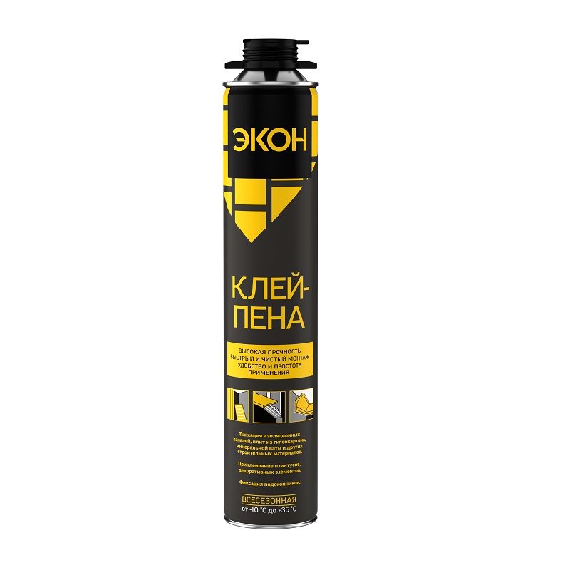 Однокомпонентная влагоотверждаемая полиуретановая универсальная монтажная клей-пена. Применяется внутри и снаружи помещений для быстрой и надёжной фиксации подоконников, изоляционных панелей, плит из гипсокартона, минеральной ваты и других строительных материалов, а также для приклеивания плинтусов и декоративных элементов. Отличается устойчивостью к плесени и влаге. Следующий этап работ возможен уже через 2 часа.