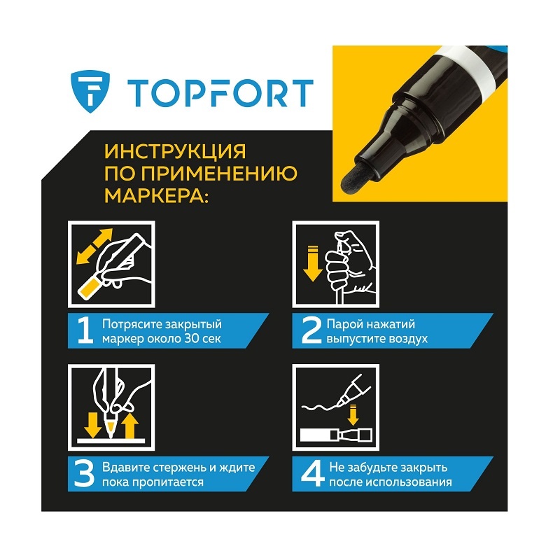 Предостережения: плотно закрывайте колпачок после применения, держать маркер вдали от источников тепла и воспламенения.