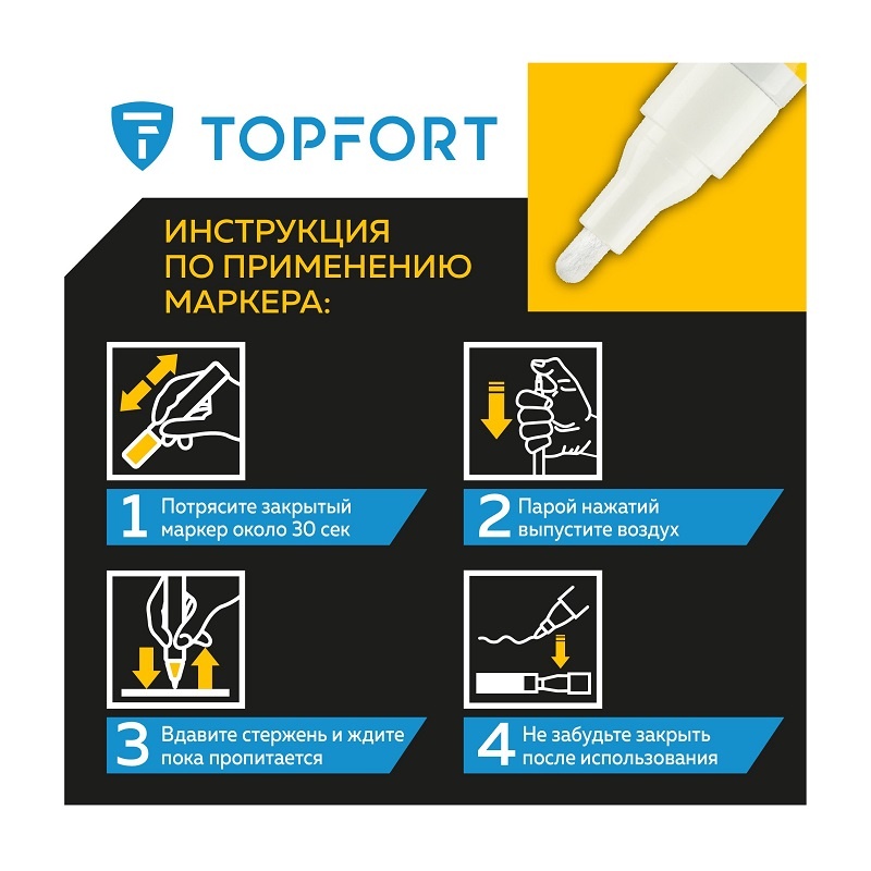 - Клапанный механизм пишущего узла исключает растекание и разбрызгивание краски, преждевременное пересыхание маркера.