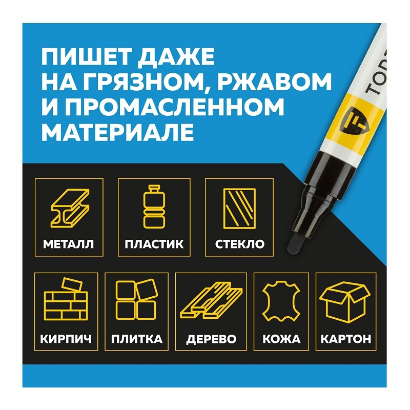 В строительном магазине Сатурн можно купить товар "Маркер лаковый Topfort Paint черный 4 мм" по цене от 175 руб с доставкой за 2 часа по Казани или оформить самовывоз.