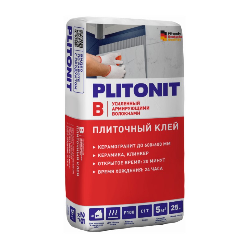 Клей для плитки Plitonit В, усиленный (25 кг)