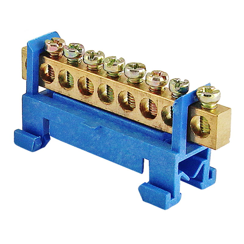 Шина "N" нулевая с изолятором на DIN-рейку 100А, 6х9 мм (8 отв.)