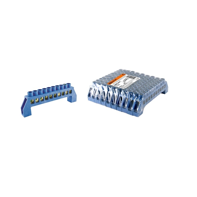 Шина "N" нулевая в изол. оболочке на DIN-рейку 125А, 8х12мм (10 отв.)