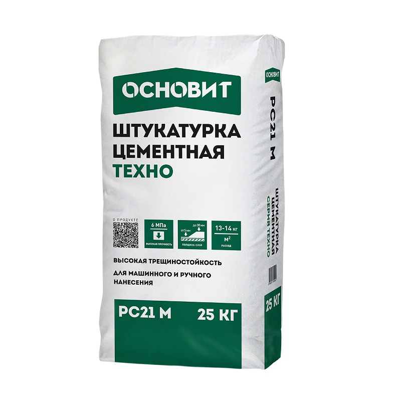 Штукатурка цементная Основит Техно PC21 M фасадная, 25 кг