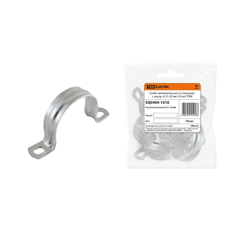 Скоба двухлапковая СМД d=31-32мм для металлорукава (уп. 10 шт.)