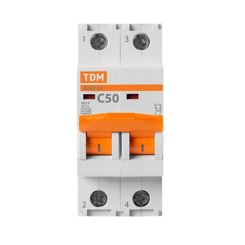 Выключатель автоматический TDM ВА 47-29 4,5кА, С 50А, 2П
