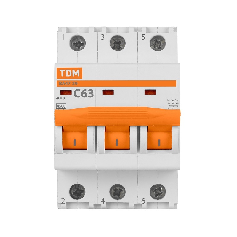 Выключатель автоматический TDM ВА 47-29, 4,5кА, С 63А, 3П
